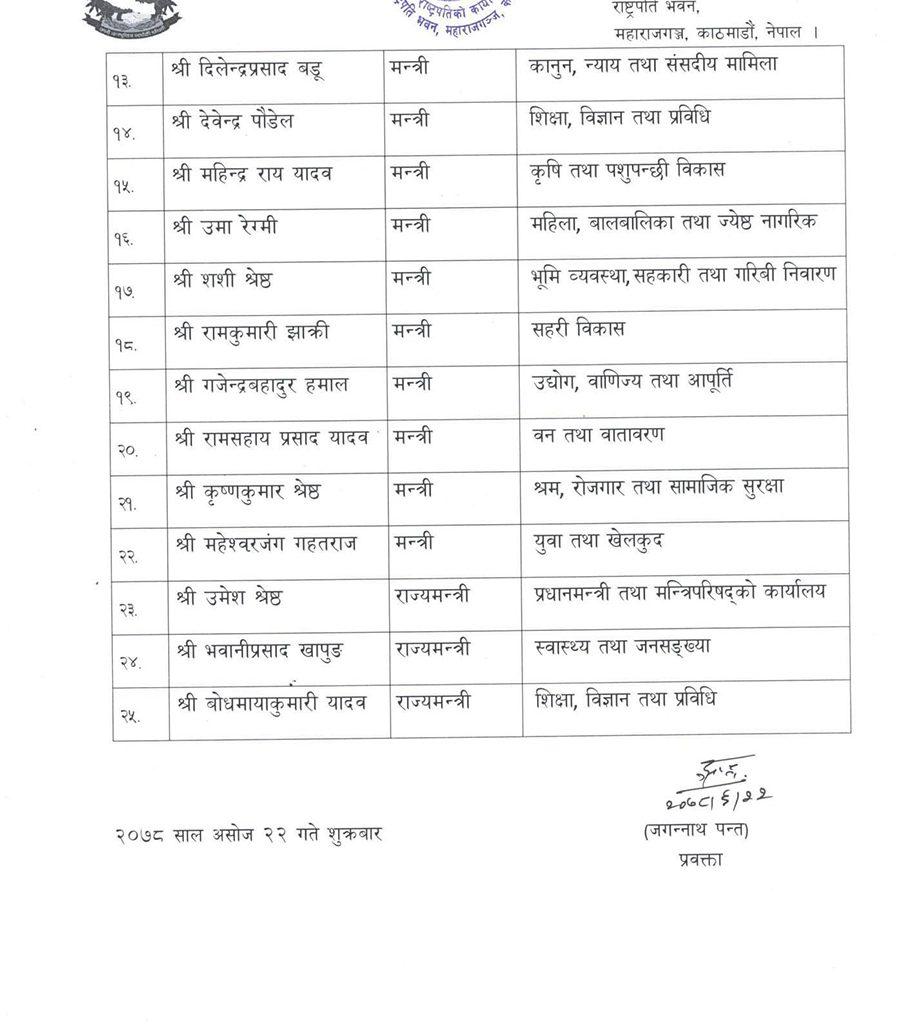 मन्त्रिपरिषद्मा पूर्णता,राज्यमन्त्री उमेश प्रधानमन्त्री कार्यालयमा