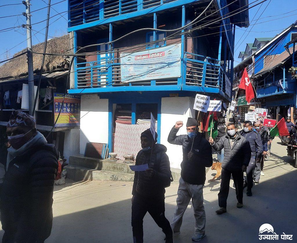 एमसिसीको बिरोधमा सत्तारुढ दल नेकपा एसका युवा दस्ता सडकमा,फुङ्लिङमा प्रदर्शन