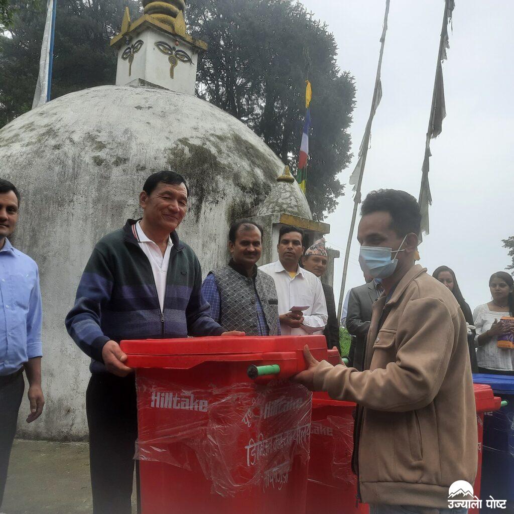 उहाँका अनुसार जिल्ला प्रशासन कार्यालयलाइ २ थान तथा जिल्ला अदालत,जिल्ला प्रहरी कार्यालय,डिभिजन वन कार्यालय,पाथीभरा सव डिभिजन वन कार्यालय,लिटलबुद्ध इङलिस बोर्डिङ स्कुल र मेची सेन्टमेरिज इङलिस बोर्डिङ स्कुललाइ १–१ थान गरी जम्मा ८ थान ठूलो साइजको डस्बिन बितरण गरिएको हो ।