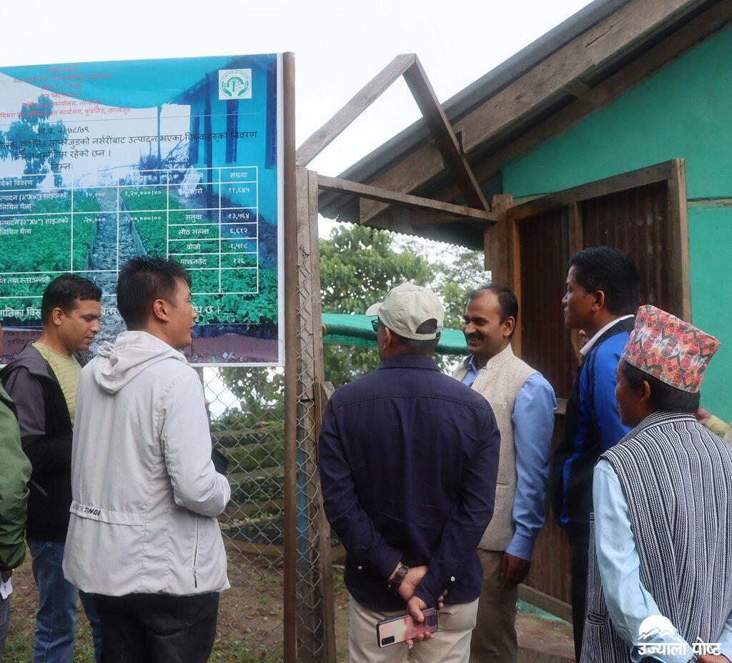 डिभिजन वन कार्यालय,पाथीभरा सव–डिभिजन कार्यालय तोक्मे,तेल्लोक,दोभान,सान्थाक्रा र तिरिङेमा नर्सरी स्थापना भएको हो । ती ६ वटा ठाउँमा जडीवुटी विरुवा १ लाख,वार्षिक विरुवा १ लाख ५० हजार र वहुवर्षिय विरुवा ३० हजारको मात्रामा रहेको सहायक वन अधिकृत यादवले बताउनुभयो । नर्सरीमा सतुवा,बोजो,अमला,अर्रो,जापानिज सल्ला,टाँकी,निभारो,सुन्तला र कागतीका विरुवा छन् । बिरुवा निःशुल्क रुपमा बितरण हुने तर प्रतिव्यक्ति २ सय भन्दा बढि मात्रामा माग भए जग्गाधनीपुर्जा अनिवार्य गरिएको यादवले जानकारी दिनुभयो । वन कार्यालयले रेडियो ताप्लेजुङ नजिक साढे ६ लाख रुपैयाँ खर्चिएर हरियाली चौतारी समेत निर्माण गरेको जनाएको छ ।