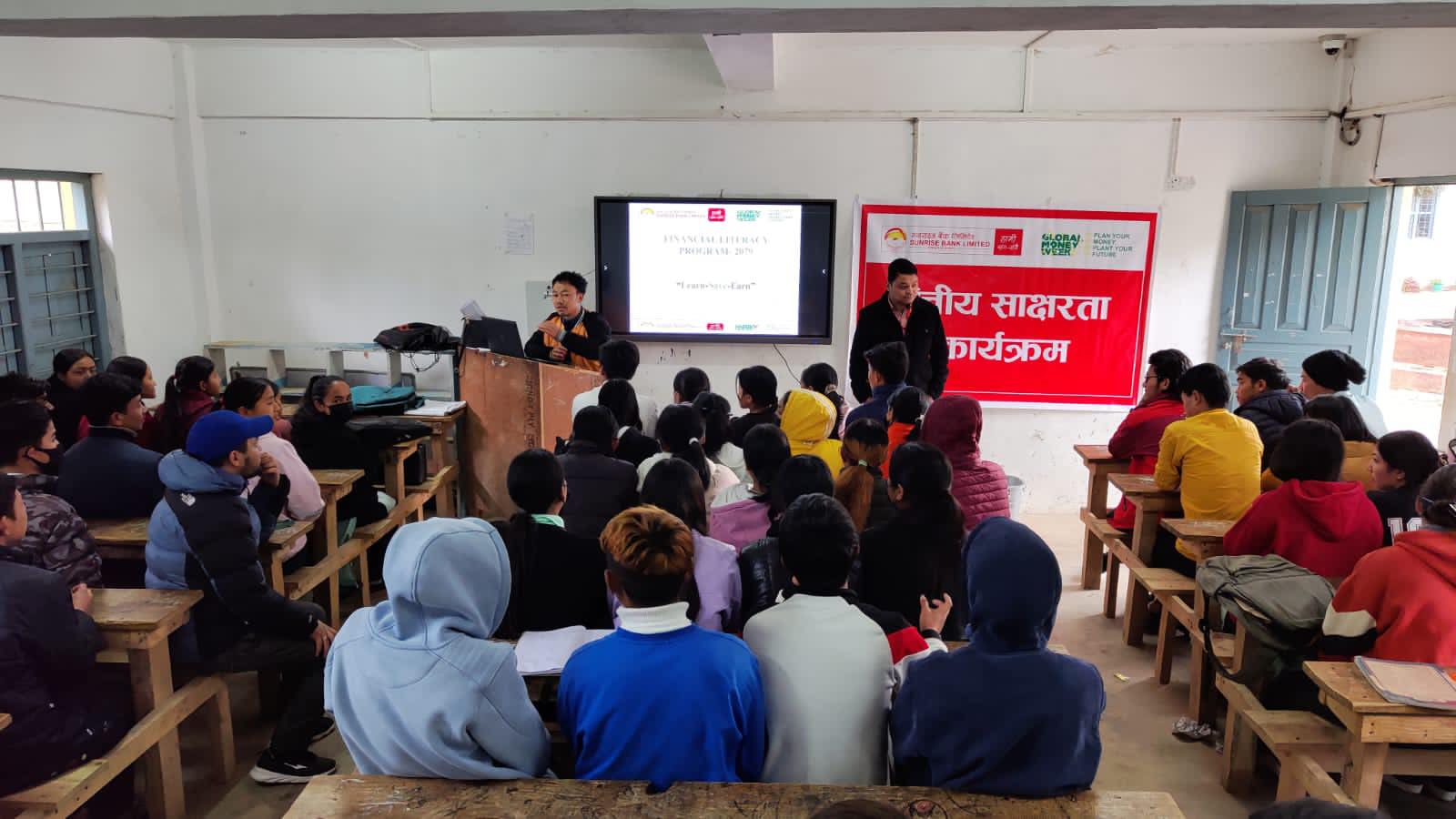 सो बिद्यालयका करिव १ सय ५० बिद्यार्थीको उपस्थितिमा बित्तीय साक्षरता सम्वन्धी अनुशिक्षण गराईएको सनराईज बैंकको फुङलिङ शाखाका प्रवन्धक अनिल श्रेष्ठले जानकारी दिनुभयो । अनुशिक्षणमा कक्षा ११ र १२ का बिद्यार्थी सहभागी भएको श्रेष्ठले बताउनुभयो । ‘plan your money, plant your future’भन्ने नाराका साथ हरेक बर्षको मार्च महिनामा साताब्यापी ‘ग्लोबल मनी विक’मनाउने गरिएको छ । यसबर्ष ग्लोबल मनी विक’को ११ औं संस्करण हो । बैंकिङ,पुँजी बजार,बीमा जस्ता बित्तीय क्षेत्र बारे जानकारी लिन र आफुले प्राप्त गरेको ज्ञान सीप आफ्नो परिवार र समाजमा प्रवाह गर्न युवापुस्तालाई अनुशिक्षण गराईएको सनराईज बैंकले जनाएको छ । युवा बिद्यार्थीमा बित्तीय साक्षरताको प्रवद्र्धन र बित्तीय पहुँच बिस्तारसंगै स्वराजगारको सृजनाका आधार,उद्यमशीलताको विकास,आयस्तर अभिबृद्धि सहितका बिषयलाई जागरण गराउन अभियान सञ्चालन गरिएको बैंकका शाखा प्रवन्धक श्रेष्ठले बताउनुभयो ।