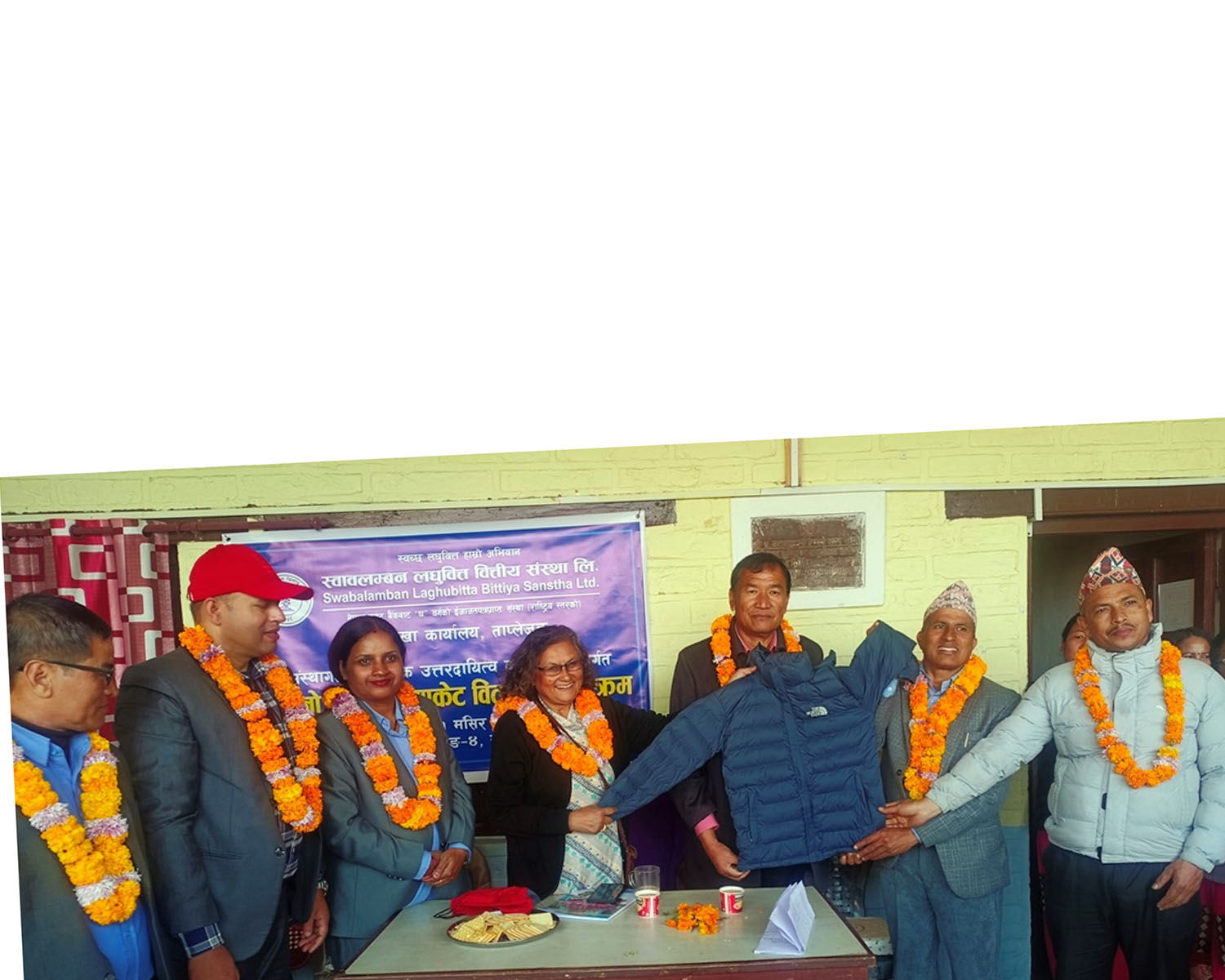 स्वावलम्वन लघुवित्त वित्तीय संस्था लिमिटेड केन्द्रीय सञ्चालक समितिका सदस्य डाक्टर सुमित्रा मानन्धरले संस्थाले आर्जन गरेको मुनाफाको १ प्रतिशत रकम सामाजिक उत्तरदायित्व खर्चिने योजना अनुरुप ताप्लेजुङमा उक्त रकम बराबरको रकमबाट उक्त न्यानो कपडा प्रदान भएको जानकारी दिनुभयो ।