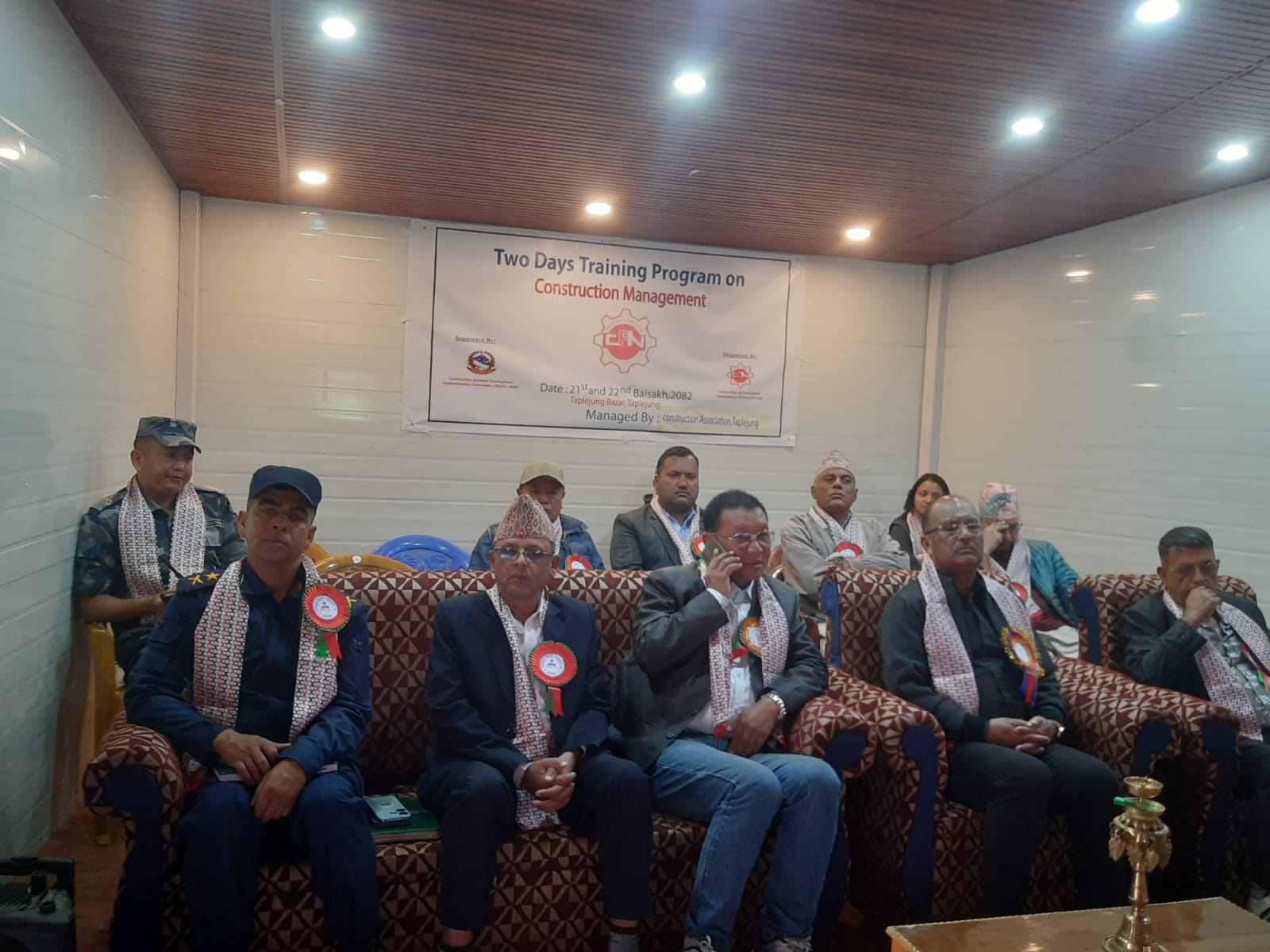 कार्यक्रमका बिशिष्ट अथिति रहनु भएका ताप्लेजुङका प्रमुख जिल्ला अधिकारी नेत्रप्रसाद शर्माले मुलुकको निर्माण र अर्थतन्त्र चलायमान बनाउन निजी क्षेत्रको योगदान स्मरणीय रहेको बताउनुभयो । निर्माण व्यवसायीलाई सुझाव दिदैं प्रजिअ शर्माले आफुले प्राप्त गरेको इजाजतपत्रको बिक्रीबाट भने निर्माण व्यवसायी टाढै रहनुपर्नेमा जोड दिनुभयो । प्राप्त जिम्मेवारी समयमै र गुणस्तरीय रुपले पूरा गर्न निर्माण व्यवसायी सम्बेदनशिल हुनुपर्ने बताउँदै प्रजिअ शर्माले निर्माणको सुरक्षा र समन्वयमा स्थानीय प्रशासनकोतर्फबाट आफुहरुले सक्दो सहयोग गर्ने बचन दिनुभयो ।