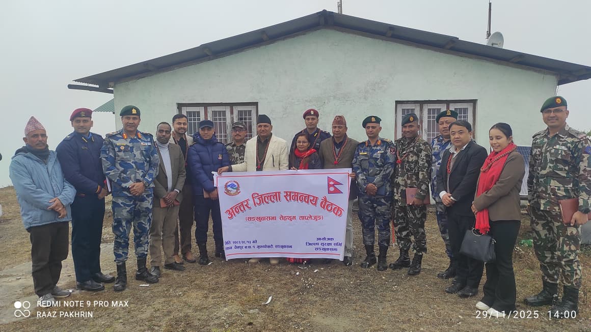 सम्भावित हिमपातजन्य सहितका अन्य विपद्को व्यवस्थापनमा सहकार्य गर्ने,लागू औषध प्रयोग नियन्त्रण तथा सिमानाका बाट हुनसक्ने चोरी निकासी नियन्त्रणमा प्रभावकारी समन्वय कायम गर्ने सहमति समेत बैठकमार्फत भएको ताप्लेजुङका सहायक प्रमुख जिल्ला अधिकारी सन्दीपा खड्काले जानकारी दिनुभयो । तीन जिल्लाका सुरक्षा अधिकारीबिच फागुन २१ गतेका लागि तोकिएको प्रतिनिधिसभाको निर्वाचन र नागरिक हितका अन्य बिषयमा समेत निरन्तर समन्वय र आपसी सहयोग आदान–प्रदान गर्ने निश्कर्षका साथ बैठक सकिएको प्रजिअ सेढाईँले बताउनुभयो ।