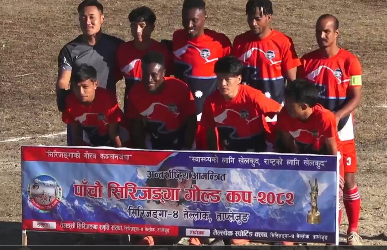 ताप्लेजुङ,मंसिर २९ । ताप्लेजुङको तेल्लोकमा सम्पन्न पाँचौं अन्तराष्ट्रिय आमन्त्रण सिरिजङ्गा गोल्डकपको उपाधि मरिक फुटबल क्लव धरान सुनसरीले जितेको छ ।