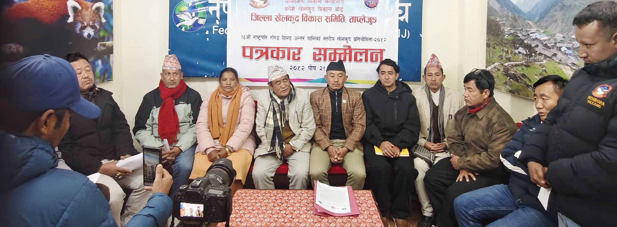 जिल्ला खेलकुद विकास समितिले सोमबार सदरमुकाम फुङ्लिङमा पत्रकार सम्मेलन गरी प्रतियोगिताबारे जानकारी गराएको हो । सिदिङ्वा गाउँपालिकाको संयोजन र जिल्ला खेलकुद विकास समितिको आयोजनामा प्रतियोगिता हुन लागेको समितिका अध्यक्ष नरेन्द्रकुमार लिम्बू (गणेश) ले जानकारी दिनुभयो ।